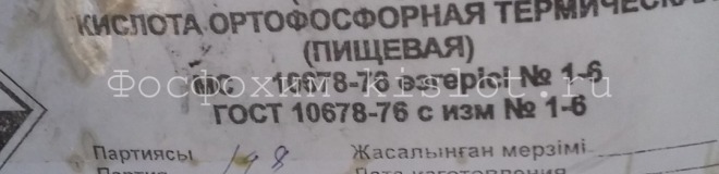 Массовая доля ортофосфорной кислоты (H3PO4), % не менее |