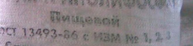 Сорт пищевой по ГОСТ 13493-86 с изм.1,2,3 |